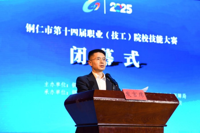 宋选文代表大赛组委会,向此次比赛中取得优异成绩的选手和单位表示祝贺,向辛勤奉献的赛事工作人员以及所有关心支持本次大赛的社会各界致以诚挚的感谢。希望各兄弟院校以本次大赛为新起点,进一步深化教育教学改革,以赛促教、以赛促改、以赛促学,不断优化人才培养模式,不断加强校企合作、产教融合,不断提升办学质量和育人水平,为推动铜仁乃至国家高质量发展贡献力量。