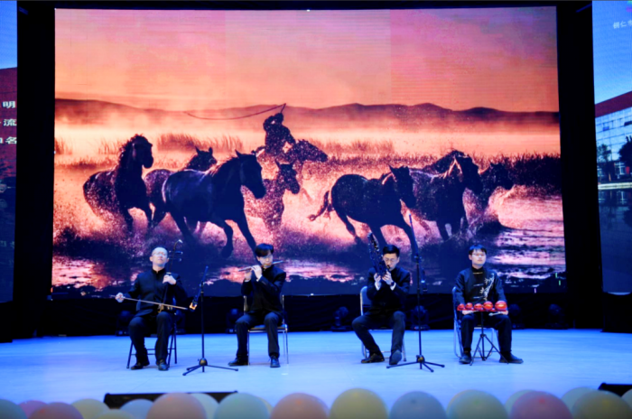 铜仁幼儿师范高等专科学校艺术系师生带来的器乐技能展示《赛马》,曲调忽而舒缓如骏马漫步、忽而激昂如赛场角逐,描绘了蒙古族牧民欢庆赛马盛况的生动画卷。