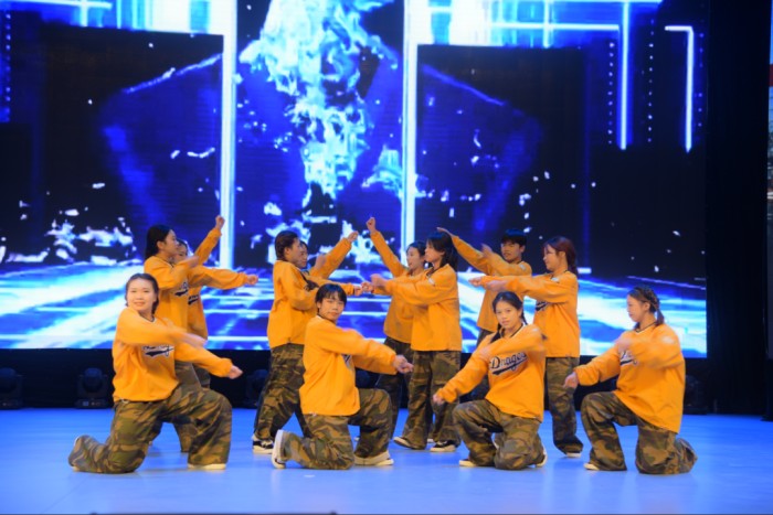 贵州健康职业学院学生带来的舞蹈技能展示《青春之韵》,以灯光为幕、舞者为笔,在节奏画布上肆意挥洒街舞和爵士魅力。舞者在关节舒展间诠释专业爵士舞法,每一次腾空的轻盈、落地的稳健,都将“自由”二字具象化——没有刻板框架,只有身体与节奏的深度共鸣,让新生直观感受爵士舞的优雅与张力,一登场便牢牢锁住全场视线。