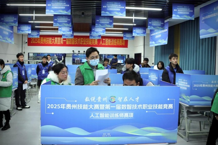 12月6日,由贵州省大数据发展管理局、贵州省教育厅、贵州省人力资源和社会保障厅、贵州省总工会、共青团贵州省委等五部门联合主办,贵州省人工智能学会协办,贵州传媒职业学院承办的“2025年贵州技能大赛暨第一届数智技术职业技能竞赛人工智能训练师赛项”在贵州传媒职业学院成功举办。