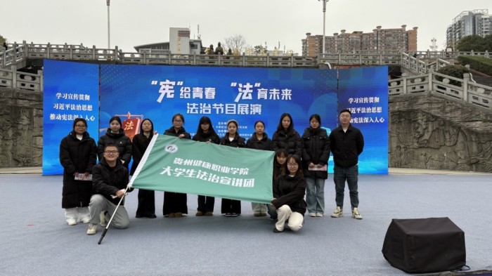 为进一步壮大校园法治宣传力量,拓宽法治教育辐射范围,贵州健康职业学院正式成立大学生法治宣讲团。12月3日组织宣讲团参加市司法局主办的“宪给青春·法育未来”法治节目展演活动,并接收市司法局授予贵州健康职业学院的大学生法治宣讲团旗帜。这面旗帜象征着使命与担当,激励着宣讲团成员们积极投身法治宣传事业,成为宪法精神的传播者、法治建设的践行者。未来,他们将带着这份使命开展形式多样的法治宣传活动,让宪法知识飞入寻常百姓家。