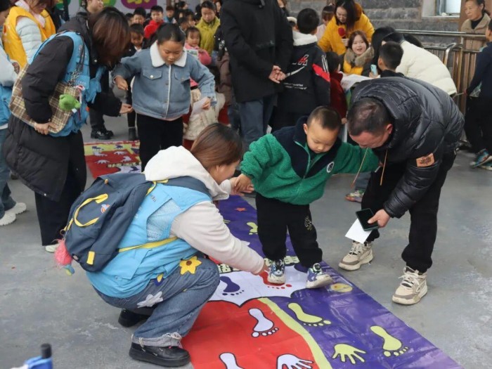 活动现场,志愿者与小朋友们开展了手脚并用、丢手绢、桃花朵朵开等互动游戏,在欢声笑语中迅速拉近了与孩子们的距离。随后,志愿者结合儿童生活场景,围绕交通安全、防溺水、防拐骗及传统节日习俗等内容,通过趣味问答、情景模拟、案例讲解的方式开展知识科普,帮助孩子们提升安全意识与文化认知。活动最后,向儿童之家捐赠了乒乓球拍、跳绳、羽毛球拍等运动器材,为丰富孩子们的课余生活提供支持。