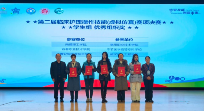 12月7日,2025“一带一路”暨金砖国家技能发展与技术创新大赛第二届“临床护理操作技能(虚拟仿真)赛项”决赛于河南鹤壁职业技术学院落下帷幕,毕节医学高等专科学校临床医学专业四名学生凭借扎实功底,全员晋级决赛并斩获佳绩:田盈盈、王明艳同学荣获二等奖,杨海燕、龙广红同学荣获三等奖。 陆影影、陈建余两位老师获评“优秀指导老师”,学校荣获“优秀组织奖”。