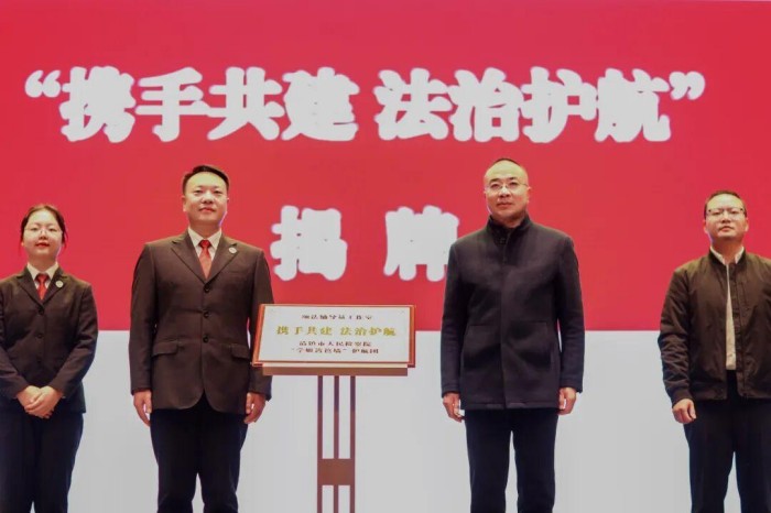 清镇市人民检察院党组书记、检察长罗英文与贵阳幼儿师范高等专科学校共同揭牌“法治教育基地”牌匾;校党委书记李华荣与清镇市人民检察院党组书记、检察长罗英文共同为“颂法辅导员工作室”与清镇市人民检察院“学姐篱笆墙”护航团的合作——“携手共建 法治护航”揭牌。两块牌匾的交接与揭示,正式搭建起贵阳幼儿师范高等专科学校与清镇市检察机关常态化、实体化的合作桥梁,为法治教育资源持续注入校园奠定了坚实基础。