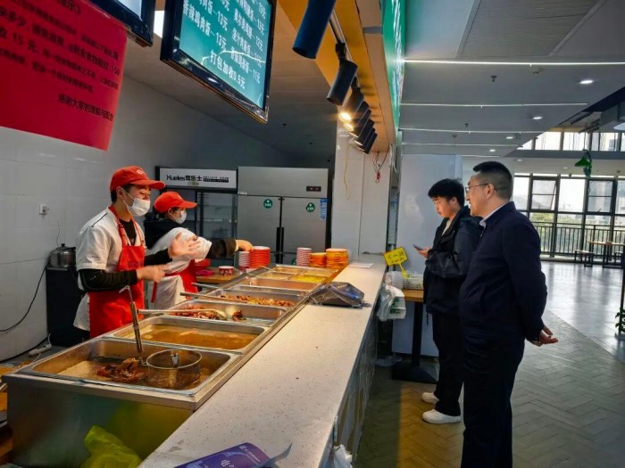 在学生食堂与超市,汪卫红随机与用餐学生交谈,询问生活费开销、菜品质量与分量等情况,倾听学生对食堂服务的意见建议;同时与窗口从业人员沟通,了解食材品质、餐费标准、日常管理及经营收入等细节。他强调,要严格落实校园食品安全责任,严把食材质量关,规范加工流程,持续提升管理服务水平,全力保障学生 “舌尖上的安全”,让学生吃得放心、安心。