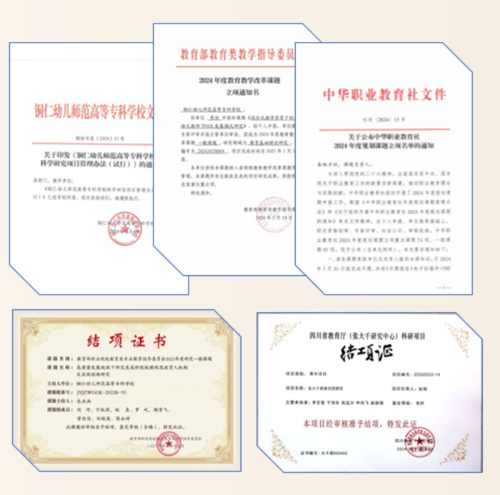 出台《科学研究项目管理办法(试行)》《科研经费管理办法(试行)》等文件,实现“申报-立项-研究-结题”闭环管理,科研项目结题率达100%。“十四五”期间,铜仁幼儿师范高等专科学校获批完成各级各类科研项目196项,其中市厅级以上科研项目98项,首次获批中华职业教育社规划课题2项、教育部教指委课题(国家级)6项、贵州省教育科学规划重点课题2项、贵州省教育改革发展研究重大招标课题1项、贵州省国别区域研究项目1项、铜仁市职业教育重大招标课题1项、铜仁市哲学社会科学规划课题2个。截至目前,已累计获批省厅级科研项目突破200项的重要关口,获批各类课题经费190余万元。