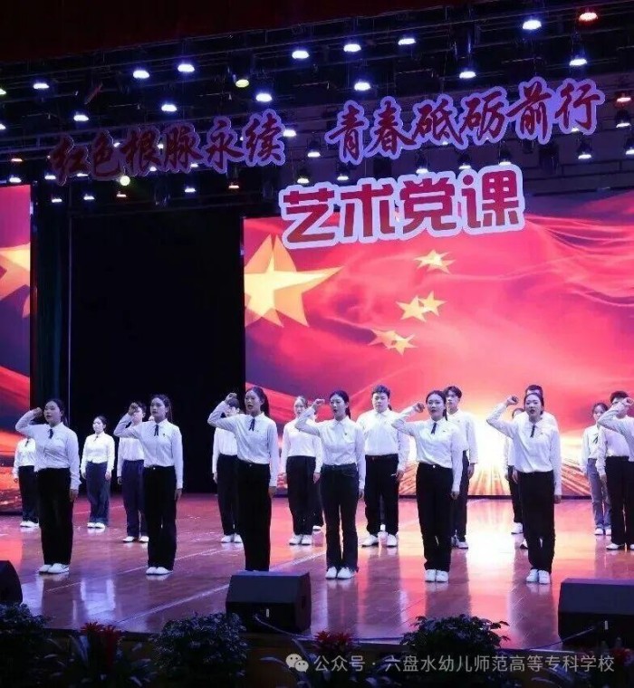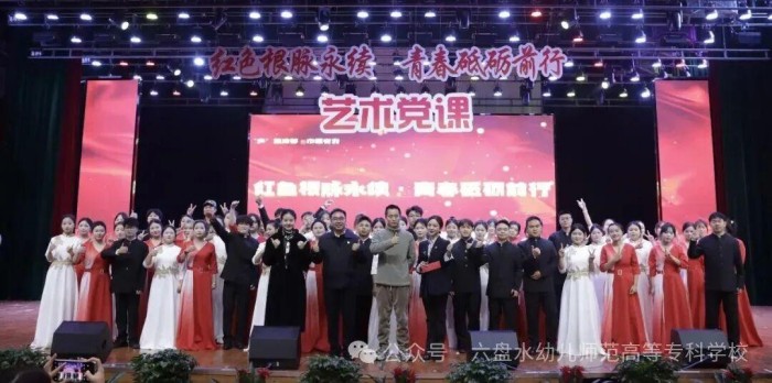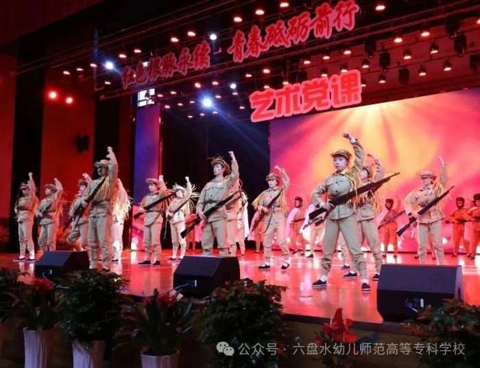 12月9日,六盘水幼儿师范高等专科学校2025年艺术党课于活动中心热烈开讲,学校领导班子成员出席此次活动。本次艺术党课以歌舞情景诗“红色根脉永续·青春砥砺前行”为主题,共分为“历史回响·红色根脉”“砥砺前行·薪火相传”“三线丰碑·红色传承”“根脉永续·青春誓言”四个篇章。