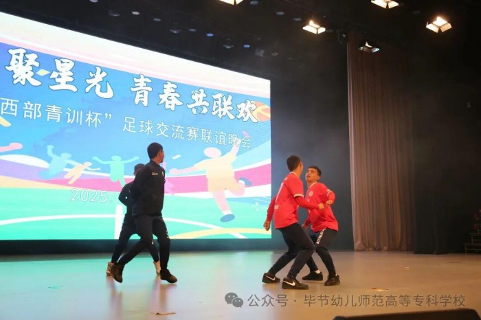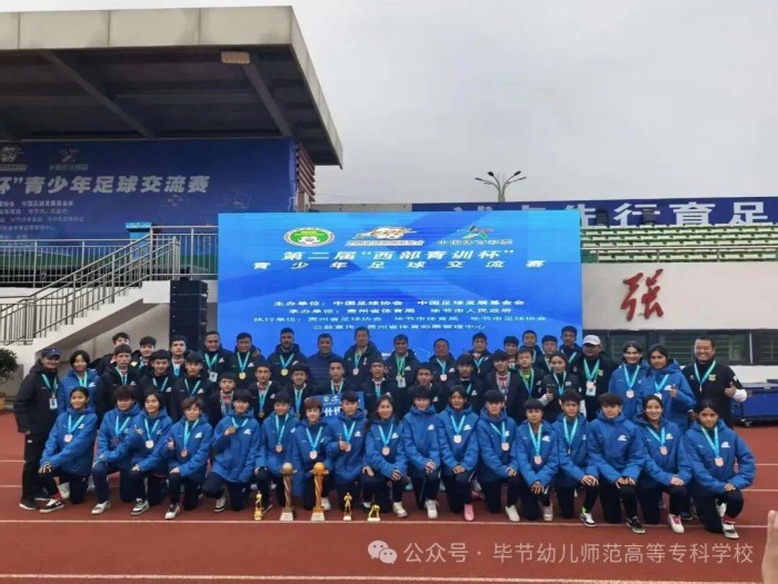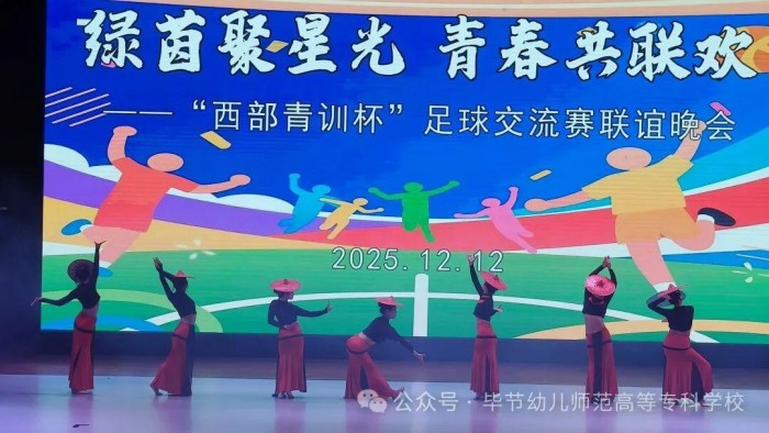 12月12日,毕节幼专举办第二届“西部青训杯”青少年足球联谊会暨风采展示活动。来自广东梅州、新疆伊犁、陕西志丹、四川凉山以及贵州毕节等地的青少年足球运动员、教练员与工作人员齐聚一堂,以“绿茵聚星光,青春共联欢”为主题,展开了一场跨越地域、融合文化的青春联欢。
