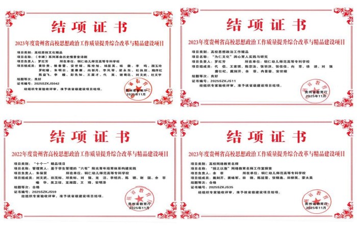 铜仁幼儿师范高等专科学校(以下简称铜仁幼专)始终秉承百年师范“为仁”文脉的传承创新,突出文化引领,坚持以文化人、以德育人,构建“为仁印记”大思政工作体系,打造文化育人新范式。从红色浸润、模式破壁、产教融合、教研赋能”等方面实施创新性发展,以百年师范“为仁文化”培根铸魂、润育人时代新人,进一步擦亮“为仁印记”的思政品牌底色。2025年获贵州省基础教育教学成果奖特等奖、一等奖、二等奖,学生在2025年贵州省职业院校技能大赛暨世界职业院校技能大赛特色赛项苗绣技艺(高职组)中斩获一等奖3项、二等奖2项。