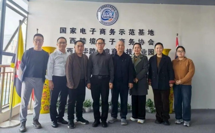 1月14日,宋选文一行到广西民华跨境电商产业园开展“访企拓岗”,在广西跨境电子商务协会负责人等行业及企业代表陪同下,实地调研产业园发展布局、运营模式、跨境电商生态建设等情况。座谈中,双方结合广西对接东盟的跨境电商发展实践,就校企合作方向、实习就业基地搭建、专业课程体系优化、学生创新创业等内容达成多项共识,为后续合作落地奠定坚实基础。
