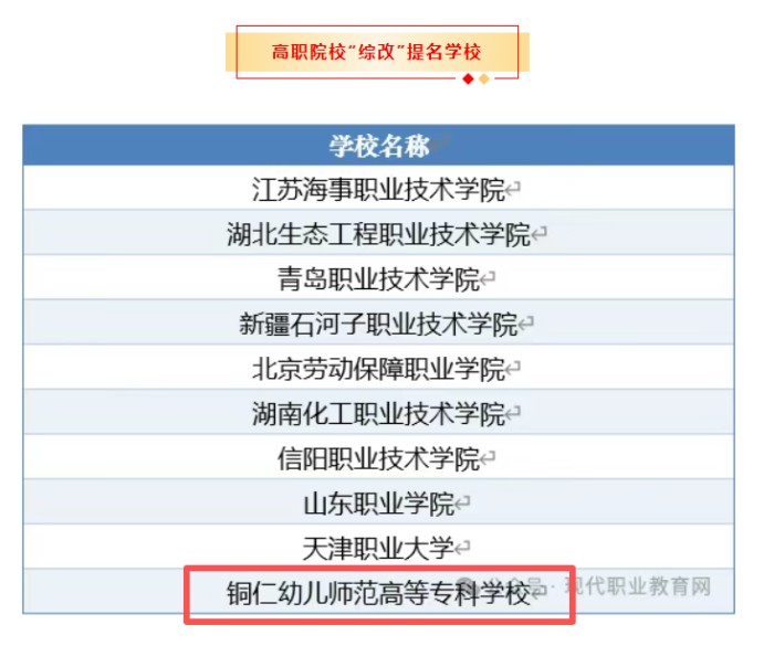 近日,中国人民大学评价研究中心联合全国高校信息资料研究会、中国教育发展战略学会高等教育专业委员会等多家权威机构发布了“2025年中国职业院校‘综改’媒体声誉指数”。该评价体系首次完全以主流媒体及社会化媒体平台的公开新闻报道为数据来源,对全国职业院校的综合改革动态与社会声誉进行量化评估。铜仁幼儿师范高等专科学校获高职院校“综改”提名学校,从第三方视角充分肯定了铜仁幼儿师范高等专科学校宣传思想工作围绕中心、服务大局所取得的显著成效。