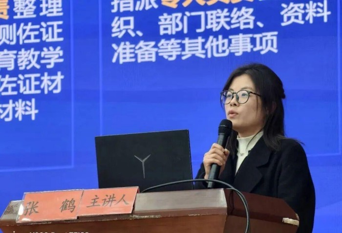 张鹤以《办学能力评价工作中的几点思考》为题,分享了其所在学校在迎评工作中的实践经验和深刻思考。详细介绍了如何组建工作专班、制定倒排工期表、精准填报数据、撰写高质量自评报告、系统化梳理佐证材料,以及如何精心准备现场考察的各个环节。
