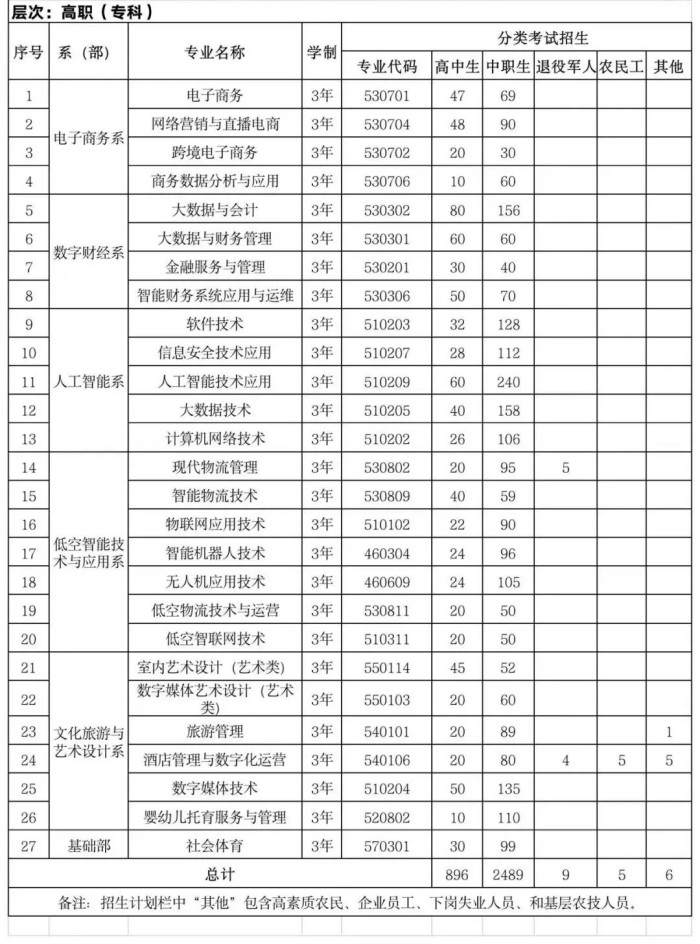 详见贵州省2026年高职(专科)分类考试招生专业目录