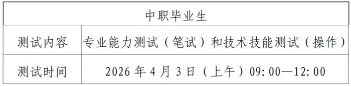 1.文化综合考试(100分):省级统一考试,包含语文、数学、英语三个科目的内容。考试时间:2026年3月14日9:00-11:30。