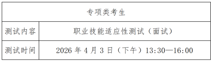 3.“专项类”考生录取成绩(满分100分)=职业技能适应性测试成绩。