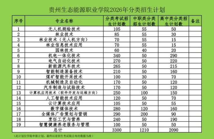 第六条 招生计划详见省招生考试院公布的贵州省2026年高职(专科)分类考试招生专业目录。
