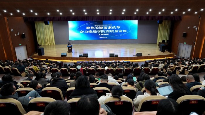 3月4日,贵州水利水电职业技术学院举办2026年“聚焦关键要素改革奋力推进学院高质量发展”工作培训,全校教职工齐聚一堂,深入学习把握职业教育改革发展新形势、新要求,为学院全年工作开好局、起好步夯实思想基础,注入行动动能。培训紧扣国家及贵州省现代职业教育体系建设改革部署,聚焦学院“双高”建设提质增效、职业本科办学探索核心任务,通过政策解读、战略规划、专项部署、经验分享等形式,开展了一场系统全面的思想动员和工作部署。