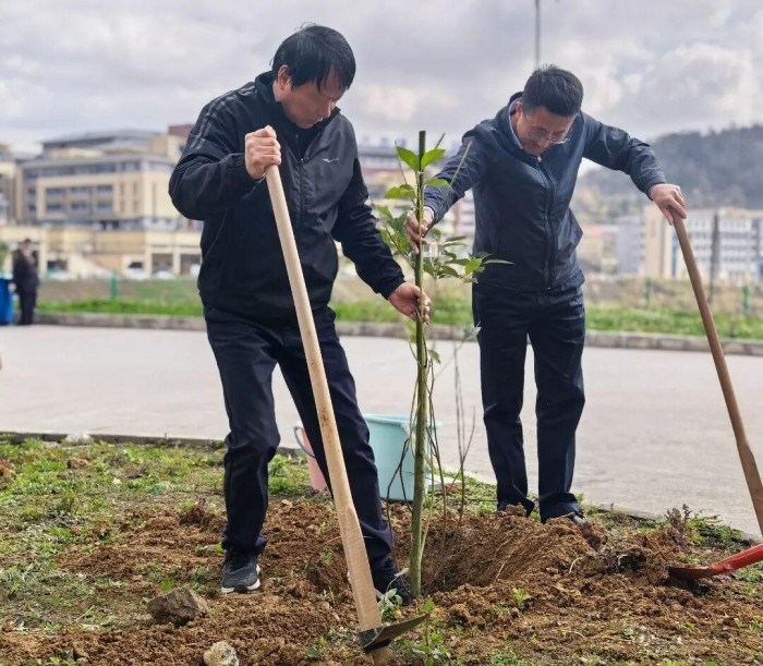 春和景明,万象更新。为深入践行“绿水青山就是金山银山”理念,厚植师生生态文明意识,3月12日,贵州农业职业学院组织开展春季植树活动。党委书记汪卫红、院长苏跃率全体党政领导班子成员一同挥锹植绿,共绘校园生态新画卷。