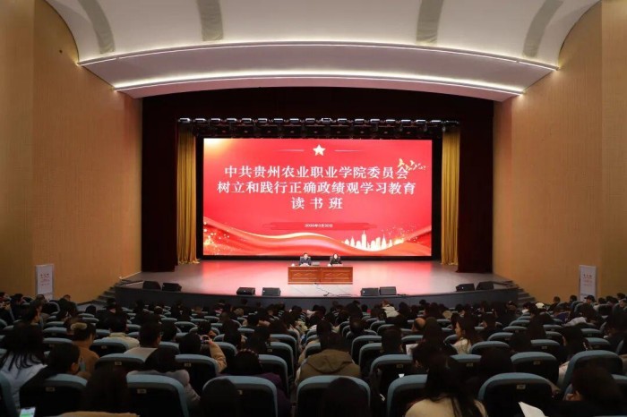 3月20日,中共贵州农业职业学院委员会树立和践行正确政绩观学习教育读书班开班。党委书记汪卫红出席开班式并作动员讲话,党委副书记黄华主持开班式。学院党政领导班子成员,副科级及以上干部,全体在职党员参加。