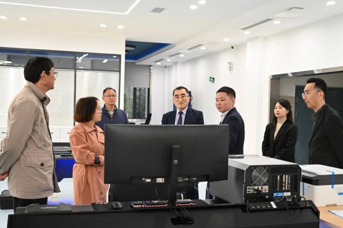 徐啓源一行先后走访了学院电商直播实训基地、电子数据取证实验室及中航信柏润数据中心,实地了解学院办学特色与产教融合成果。