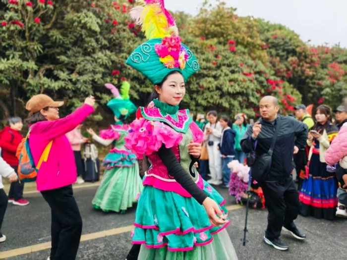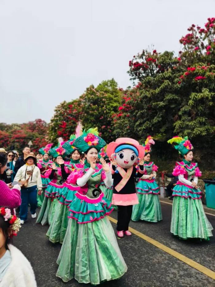 在持续一个多月的花季活动中,毕节幼儿师范高等专科学校学子分别参与了白天“景区微演绎”与夜间五大篇章主题巡游。他们身着特色服饰,以“花仙子”形象穿梭于醉九牛、数花峰等核心景点,通过“花仙送喜”“仙女散花”等情节设计与游客亲切互动,并在“花仙共舞”“铁火绽花”等环节中展现出色舞台表现力。此次专业实践不仅为百里杜鹃注入了青春活力,提升了游客沉浸式体验,也彰显了毕节幼儿师范高等专科学校在“以文塑旅、以旅彰文”融合育人方面的显著成效,是高校服务地方文旅经济高质量发展的生动写照。