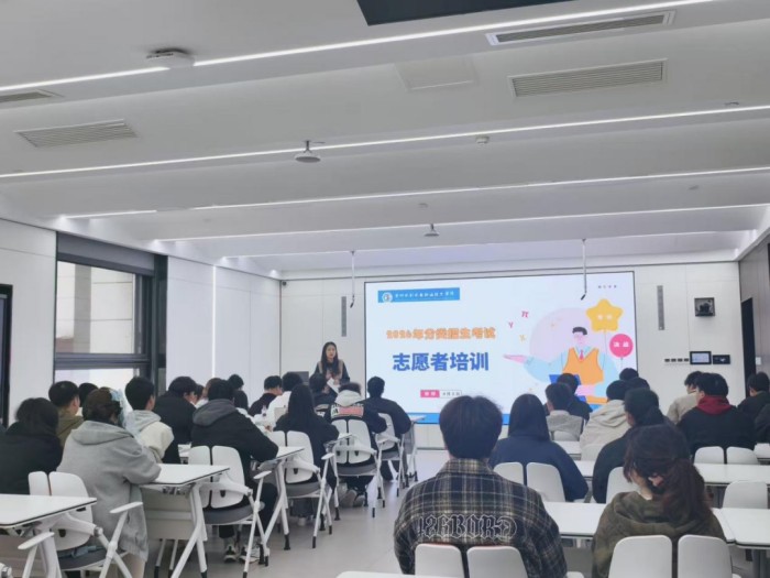 为保障考试平稳有序、规范高效,学院成立专项工作组,统筹教务处、宣传统战部、招生就业处、网络信息中心、后勤保障处等部门协同联动,400余名教职工及志愿者全力参与考务保障。考前,考务组针对面试官、机考考官、记分员、管理员及志愿者等岗位开展分批分类专项培训,明确职责流程;并对各考场进行全面检查,从严从细落实各项准备工作。