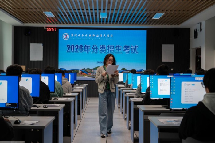 4月3日,贵州水利水电职业技术学院2026年分类招生考试顺利举行。本次考试分高中类/专项类和中职类,考试科目有职业技能适应性测试(面试)、专业能力测试(机考)和技术技能测试(实操)。面试官对考生依次进行考核,考场纪律严肃,考试秩序井然。
