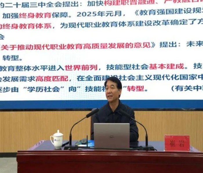 专题报告环节,石忠教授作了题为《国家职业教育创新发展高地的山东探索与实践》的报告,系统介绍了山东职教高地建设经验与探索成果;崔岩教授作了题为《高质量现代职业教育体系建设及改革发展》的报告,深刻阐释了现代职教体系建设的基本逻辑与改革路径。