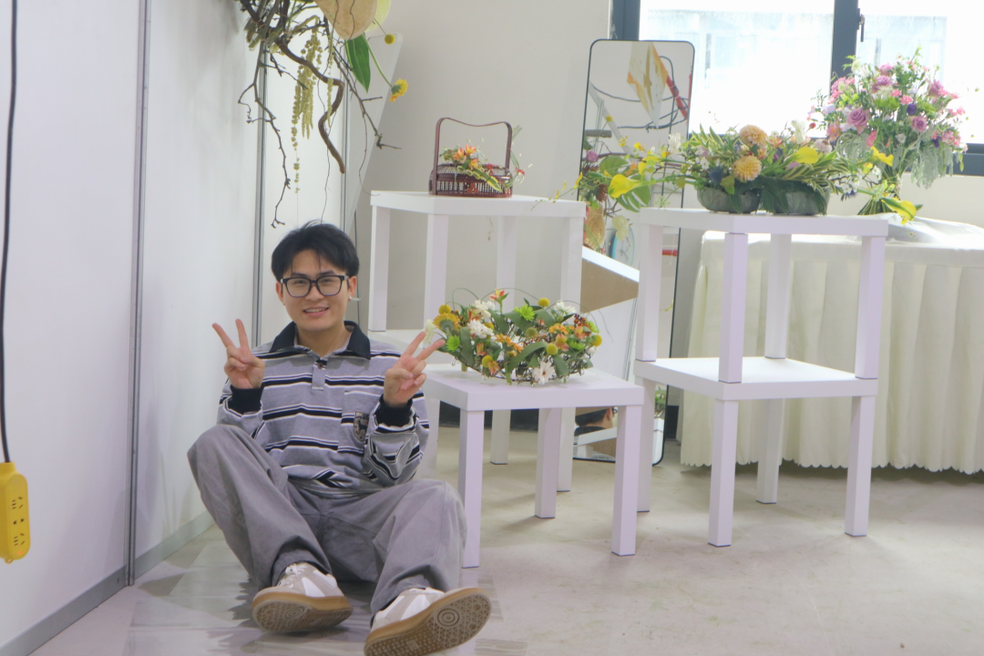 大一入学,杨国进带着对花艺艺术的热爱与追求走进校园,大一下学期,他正式加入学校花艺赛项训练队。从零基础起步,到层层选拔脱颖而出,再到成为学校核心梯队选手,他用日复一日的坚持,在花艺赛道上稳步前行。