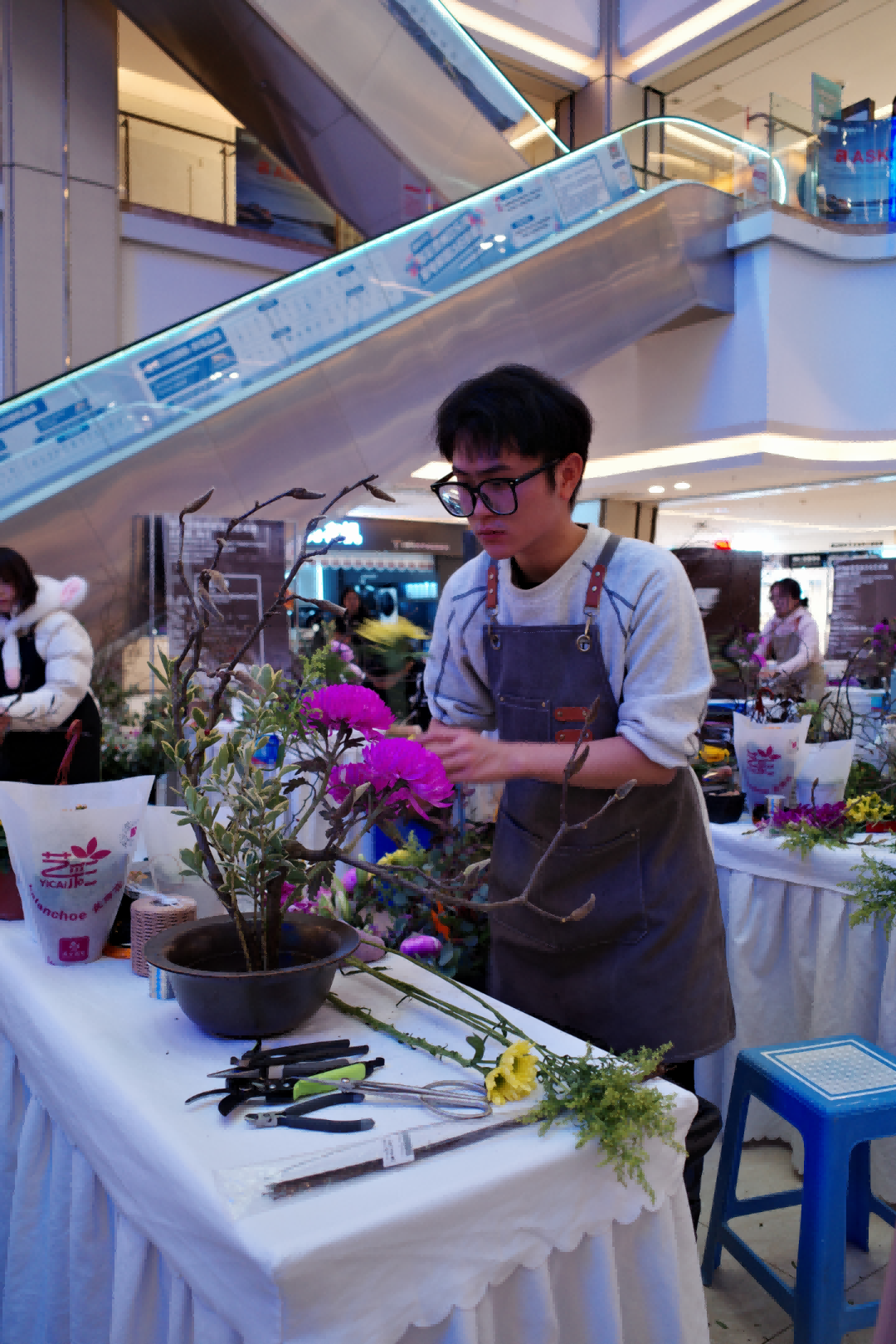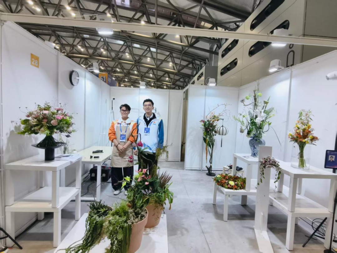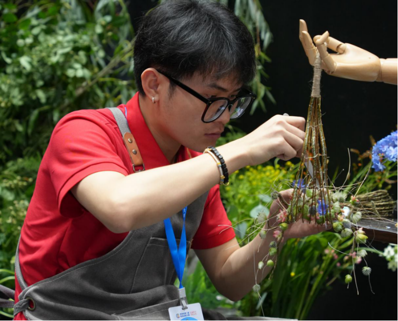备战期间,杨国进始终以最严格的标准要求自己。每天从早到晚都在花艺训练室训练,反复打磨插花技巧、提升制作速度,在无数次练习中强化手感、磨炼心态。为了在赛场上从容发挥,他不仅苦练技术,更主动突破心理关,在一次次模拟比拼中练胆量、稳节奏,把每一次训练都当作正式比赛。