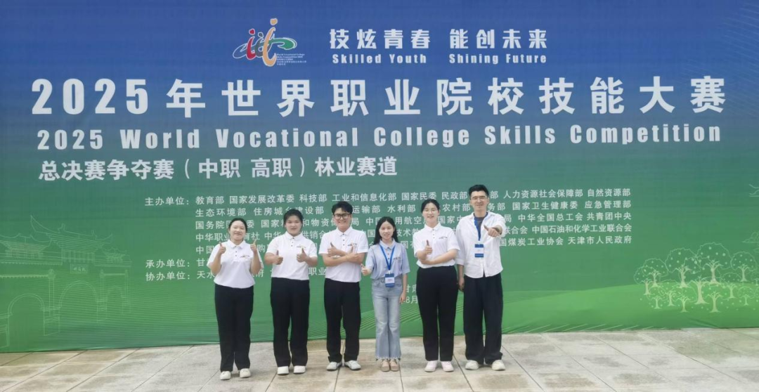 2025年世界职业院校技能大赛杨国进(左三)与团队成员及指导老师合影