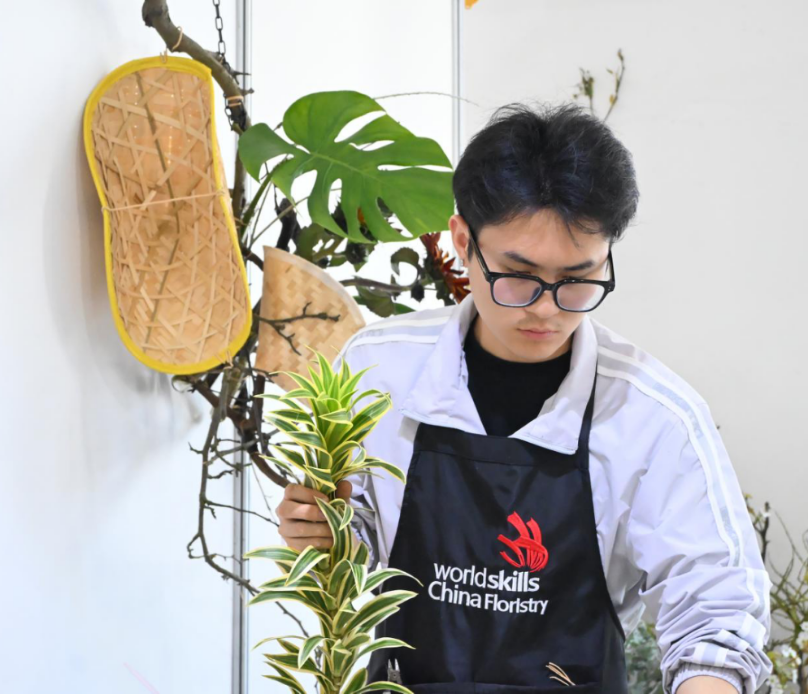 从校园训练场到省级金奖,从国赛舞台到国家集训队,每一步都脚踏实地,每一份成绩都来之不易。杨国进表示,这份成绩的获得离不开学校搭建的优质平台,离不开教练的悉心指导与全程陪伴,更离不开自己永不言弃的坚持。那些深夜的复盘、手指上的伤口、失败后的迷茫,都成为了他成长路上最珍贵的财富,让他在花艺之路上更加坚定、更加从容。