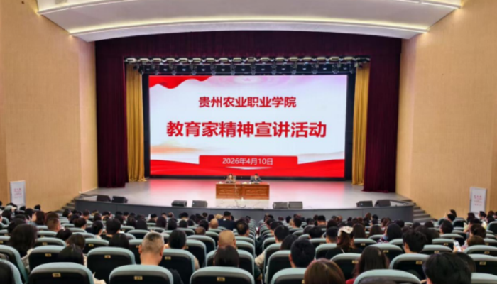 近日,贵州农业职业学院在清镇校区大礼堂举办2026年教育家精神宣讲活动,学院党委委员、副院长肖连军主持宣讲,600余名教职工现场聆听。