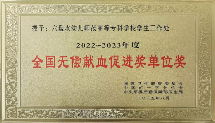本次获评“全国无偿献血促进单位奖”,既是对六盘水幼儿师范高等专科学校公益担当与文明建设的充分肯定,也是全体师生爱心汇聚、无私奉献的集体荣光。学校将持续深化无偿献血宣传与组织工作,带动更多师生积极参与到无偿献血事业中来,为保障区域医疗用血、推进社会文明进步做出应有的贡献。