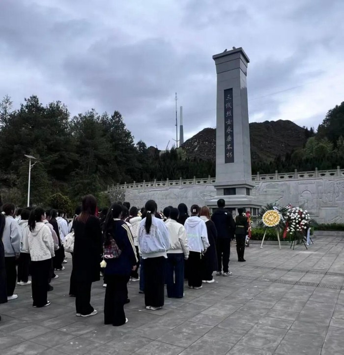 活动现场庄严肃穆、秩序井然。全体人员整齐列队,神情肃穆,向在三线建设中英勇献身的革命先烈默哀致敬,深切追思先烈功绩,寄托崇高敬意与无限哀思。默哀毕,师生代表依次缓步上前,敬献鲜花,以朴素而庄重的方式缅怀英烈、告慰忠魂。