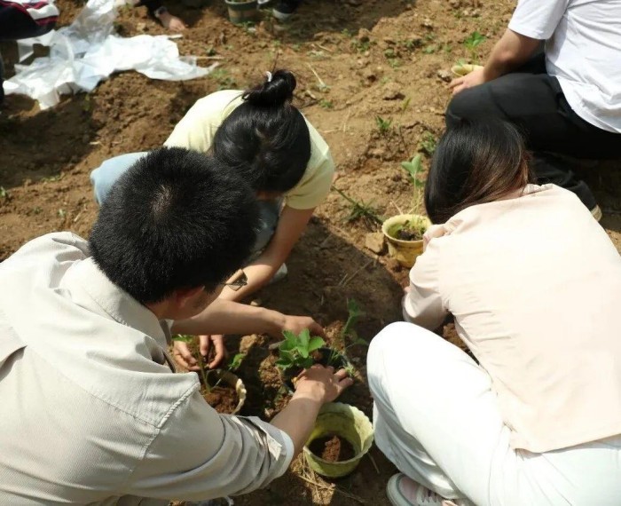 走进沃野新篇,共话乡村振兴。三线建设博物馆参观结束后,师生一行前往六盘水山海园种植农民专业合作社,感悟乡村振兴战略和科技兴农魅力。全国人大代表、六盘水山海园种植农民专业合作社理事长李世瑶博士结合自身求学和创业经历,把课堂搬到田间地头,给同学们上了一堂生动形象的思政课。李博士从青年学生专业学习到毕业择业,从草莓、西瓜、玉米品种选取到风向、土壤酸碱度、雨水等自然条件的适应,从个人成就到带动百姓集体致富,全方位、深层次、动真情地给同学们做了详细的分享。分享过程中,李博士为了让同学们敬畏大自然、敬畏生命体,他提议同学们像“照顾自己的孩子”一样去“照顾草莓”,拿出最新的培育品种,现场教授大家摘种草莓。在动手参与劳动、一问一答的教学过程中,同学们学会了草莓的栽种与养护知识,深刻理解了食品安全的重大意义。