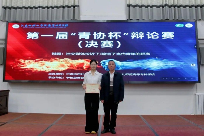 4月16日晚17:30,由六盘水市计划生育协会、六盘水幼儿师范高等专科学校主办,学校总务处、学校青春健康同伴社承办的六盘水幼儿师范高等专科学校第一届“青协杯”辩论赛决赛在热烈氛围中拉开战幕。经过初赛的激烈角逐,四支队伍会师决赛舞台,围绕“社交媒体拉近了/疏远了当代青年的距离”这一时代热题,为现场观众献上了一场思辨盛宴。
