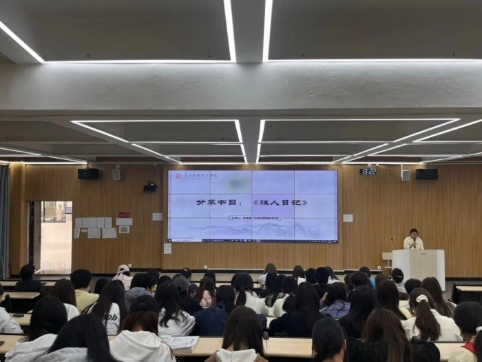 在阅读分享环节,两位学生代表分别围绕《平凡的世界》与《狂人日记》两本经典书目,畅谈阅读感悟。她们结合专业学习与成长经历,讲述了经典作品如何在迷茫中指引方向、在平凡中激扬力量,真挚的分享赢得现场阵阵掌声。