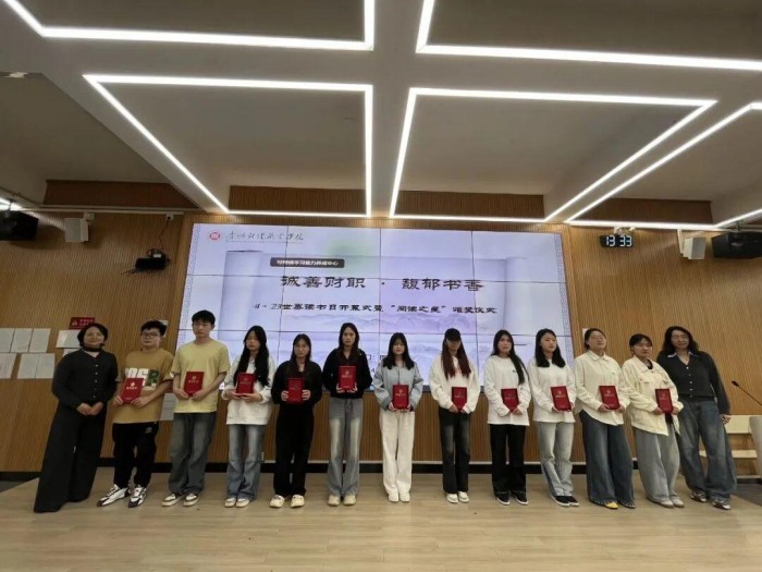 为深入学习贯彻党的二十大精神,扎实推进全民阅读活动在校园落地生根,倡导“爱读书、读好书、善读书、常读书、会用书”的优良学风,树立学生阅读榜样,服务学校立德树人根本任务,4月14日,图书馆成功举办“诚善财职·馥郁书香”世界读书日开幕式暨“阅读之星”颁奖仪式,活动吸引了140余名学生积极参与。