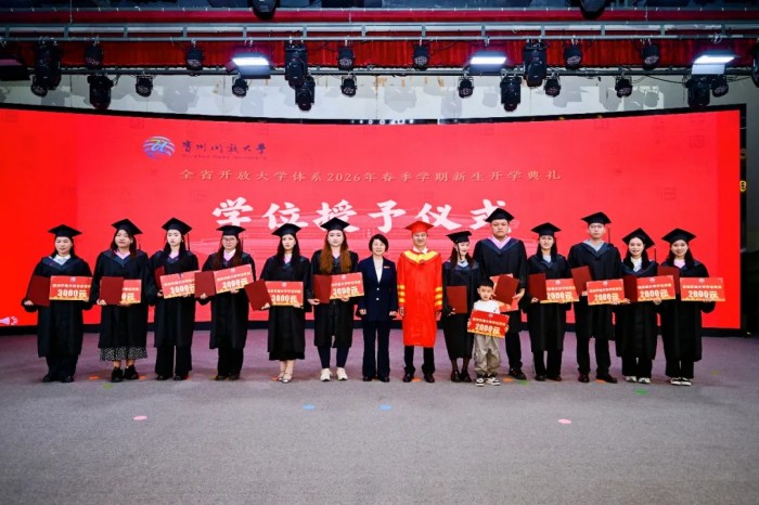 4月18日,孔学堂内古乐悠扬、文脉流淌,贵州开放大学体系2026年春季学期开学典礼暨“梵净山开放讲谈”在此启幕。来自全省开放大学体系领导、教育领域同仁、各界嘉宾以及2026年春季学期新生齐聚一堂,线上线下同步参加。此次活动由贵州开放大学主办、贵阳开放大学承办。