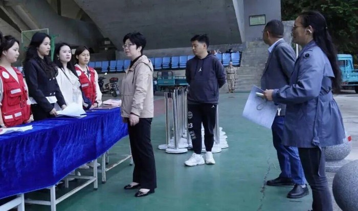 付萍一行先后前往比赛场地、候赛室、设备储藏室、保密室等赛事关键区域,重点围绕竞赛设备调试、场地环境布置、赛事流程衔接、安全防控措施、后勤食宿保障、志愿服务安排、物资储备落实等重点工作进行全方位检查,全面梳理筹备工作薄弱环节,针对检查中发现的问题,现场提出针对性整改优化意见,确保赛事各环节无缝衔接、规范有序。