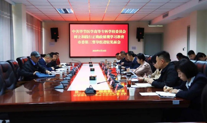 按照市委统一部署,4月14日,树立和践行正确政绩观学习教育市委第三督导组督导毕节医学高等专科学校见面会召开。市委第三督导组组长陈勇讲话,传达学习党中央决策部署和省委、市委工作要求,通报市委督导组的职责任务、工作安排和具体要求,研究部署指导督导工作。学校党委书记张体江主持会议并讲话。