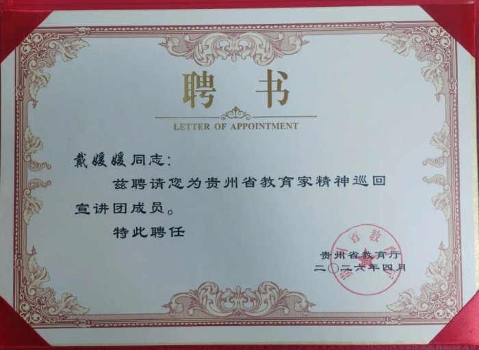 此次全省巡回宣讲,是省教育厅贯彻落实教育部相关部署、大力弘扬教育家精神的重要举措。戴媛媛和她的同仁们走过的,不仅是一条宣讲路线,更是一条播撒智慧、传递薪火的道路。他们的动人故事,正如春风化雨,浸润着贵州教育沃土,激励着更多教师争做自觉践行教育家精神的“大先生”,为培养担当民族复兴大任的时代新人贡献光与热。