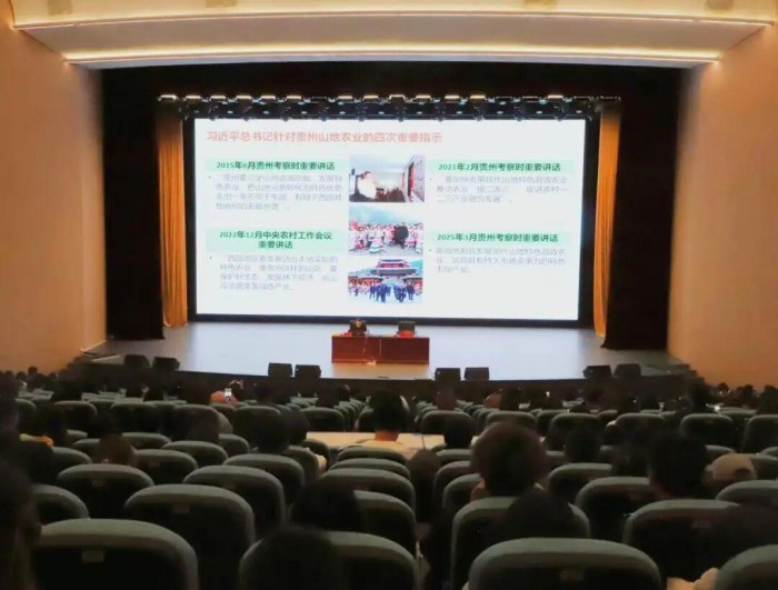 专题讲座上,傅强书记围绕山地农业现代化战略展开深入讲解,系统阐释了山地农业现代化的核心内涵、鲜明特征与发展规律,全面梳理了当前贵州山地农业发展的实践成果,深入剖析了发展过程中存在的瓶颈问题,并针对性提出了科学区划布局、强化市场驱动、推动产业升级等贵州山地农业现代化发展路径。此次讲座主题鲜明、内容详实、指导性强,为贵州农业职业学院进一步深化职业教育改革、提升办学治校水平、精准服务地方“三农”工作提供了坚实的理论支撑和清晰的实践指引。