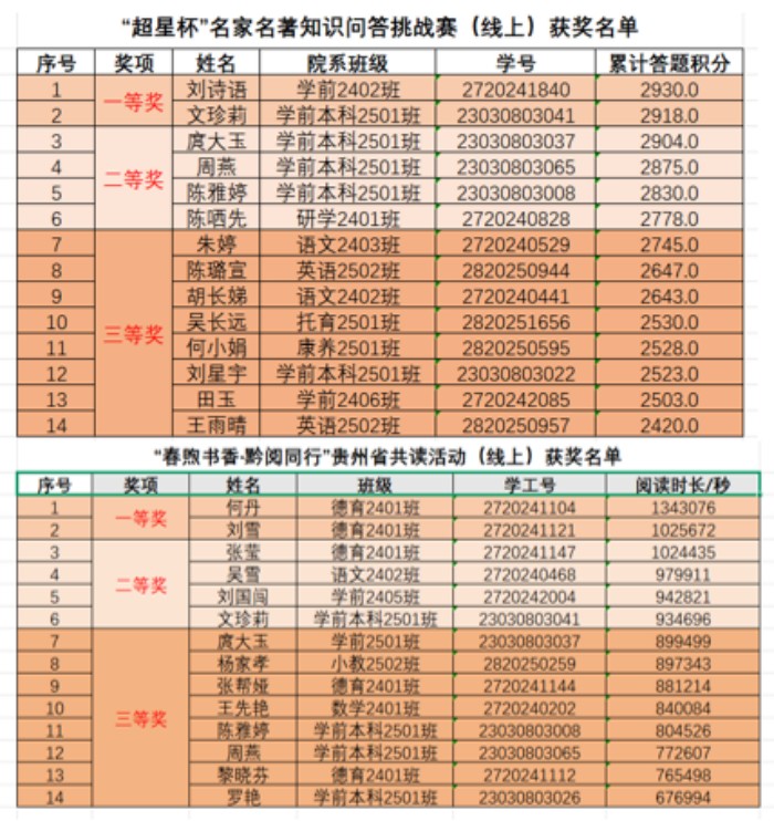 线上赛事精彩纷呈:“超星杯”名家名著知识问答挑战赛、“春煦书香·黔阅同行”贵州省线上共读活动顺利收官,同学们通过云端答题、线上共读的形式,打破时空限制参与阅读,在知识比拼中拓宽视野,在长期阅读中沉淀素养,让阅读融入课余生活。