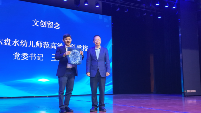 学校党委书记王宜治向李德威教授赠送了师生创作的蜡染文创作品,见证两地教育交流的深厚情谊。六盘水幼儿师范高等专科学校学生展示了舞蹈艺术作品“春日”。