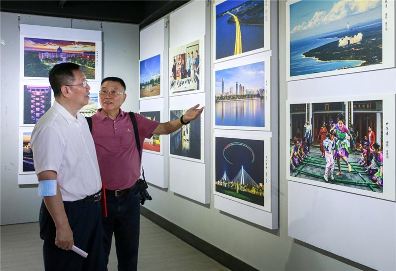 海口经济学院举行“喜迎二十大,红心永向党——师生书画摄影作品展”开幕式