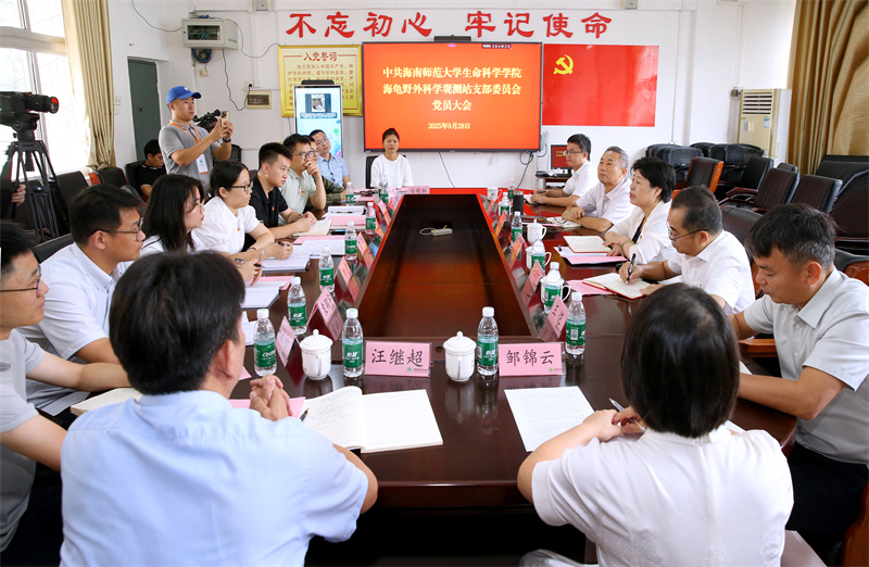 9月28日上午,海南师范大学生命科学学院海龟野外科学观测站党支部第一次党员大会在龙昆南校区生科楼举行,标志着该野外科学观测站党支部正式成立。校党委书记许玫、党委副书记符刘才出席,生命科学学院领导班子成员、三沙市海洋保护区管理局代表及观测站师生代表列席会议。