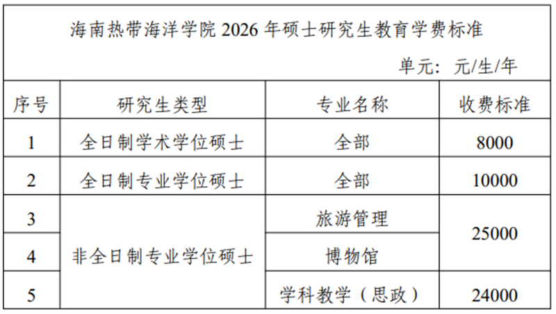 2026年学校招生专业及各专业拟招生计划详见《海南热带海洋学院2026年硕士研究生招生专业目录》(以下简称招生专业目录)。