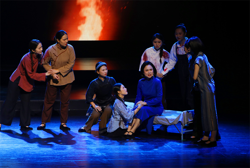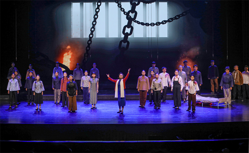 随后,《江姐》经典唱段《红梅赞》响起,演员们以极具张力的演唱,塑造出江竹筠坚贞不屈的崇高形象。江姐扮演者、2022级艺术硕士黄茜表示,每一次排练都像与先烈对话,她希望用艺术传递信仰的力量,让红色故事感染更多同龄人。